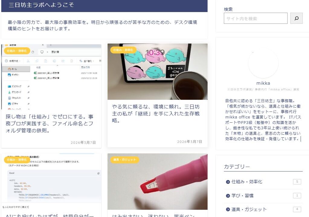 - ほうじ茶: 香りがしたら「今はブログの時間」と脳に覚え込ませる。 自分が頑張るのではなく、お気に入りの道具に囲まれて「ついつい触ってしまう」状況を作ったことが、10記事続いた最大の秘策です。
